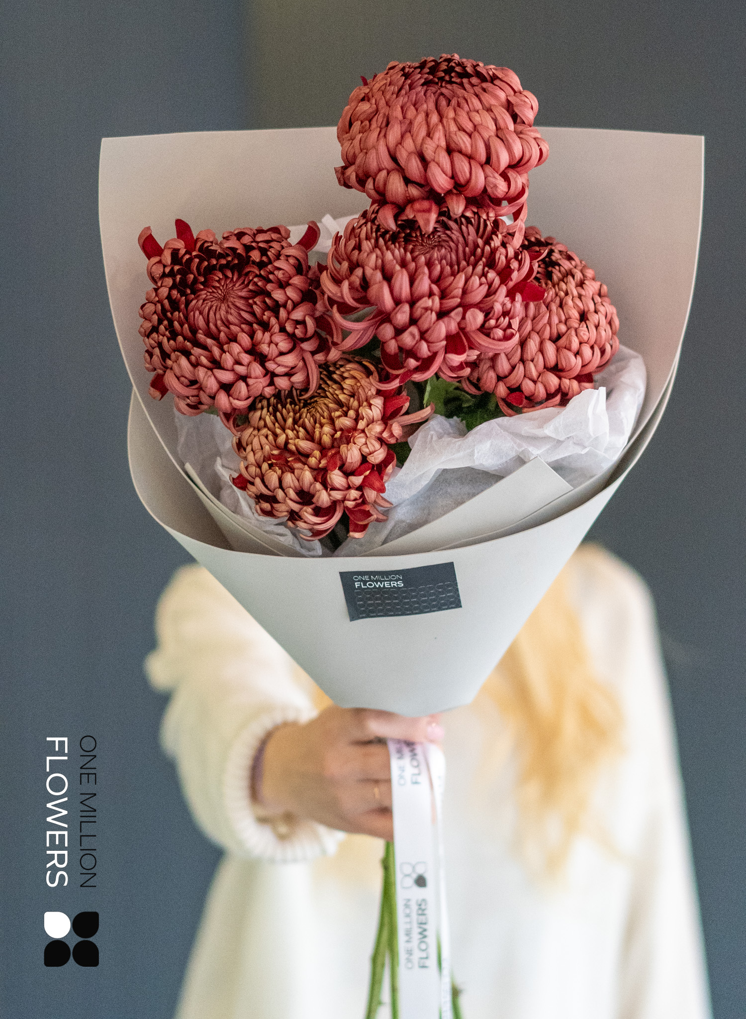 Букет из 5 шоколадных хризантем "Бигуди" Gray — это настоящий праздник для глаз и души. Нежные шоколадные оттенки хризантем создают атмосферу тепла и уюта, а их уникальная форма придаёт композиции оригинальность. Этот букет станет великолепным украшением для любого торжества, а также идеальным подарком для близких людей. В нём сочетаются как элегантность, так и современный стиль, что делает его универсальным выбором для самых разных случаев.