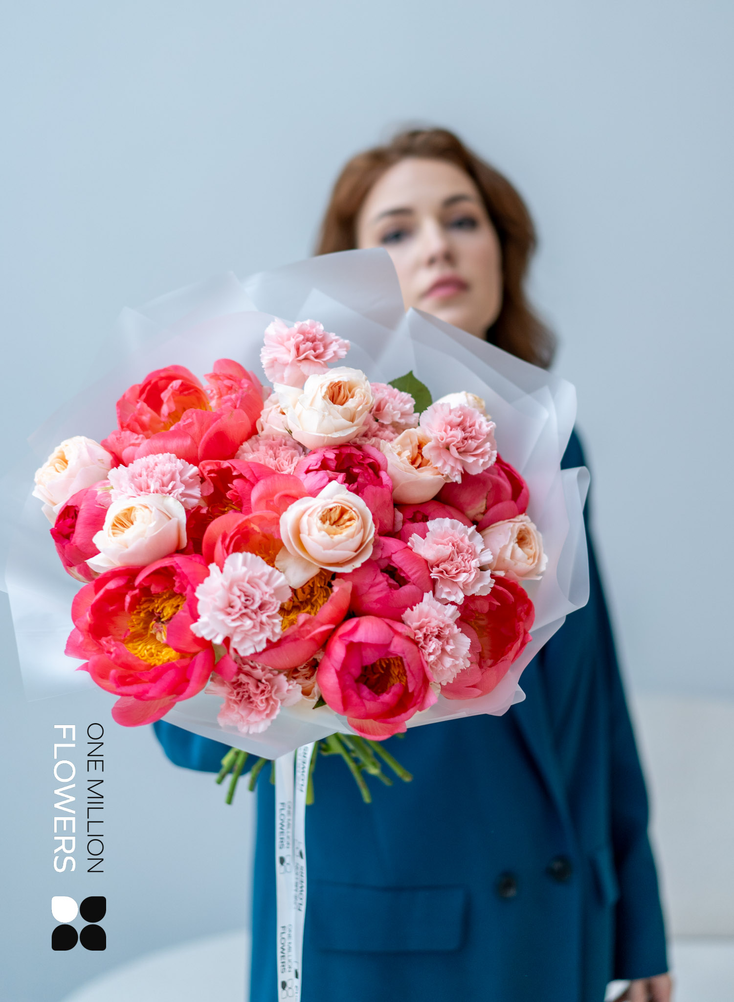 1. Эстетическая привлекательность: Пионовидные розы Девид Остин Джульетта, известные своей исключительной декоративностью, привносят в букет романтизм и неповторимость, а коралловые пионы создают ощущение свежести и уюта.